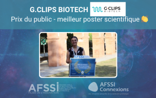 Nous avons le plaisir d'annoncer que G.CLIPS Biotech a remporté le prix du public du meilleur poster scientifique des AFSSI Connexions 2025 ! La session posters est un temps fort des AFSSI Connexions qui permet aux membres de mettre en avant leurs travaux de recherches. Pour cette troisième édition, 15 posters ont été exposés [...]